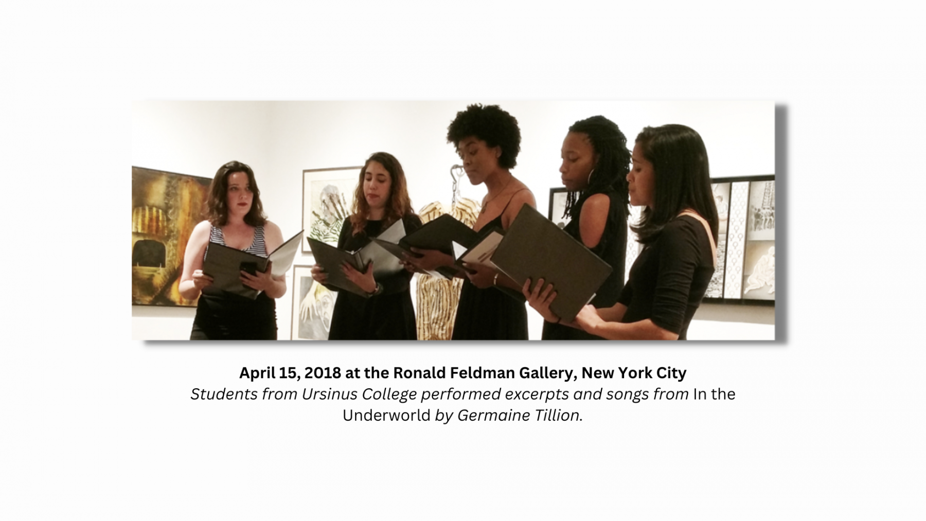 In 2018 our theater event was created in connection with our international group art exhibition, VIOLATED! Women in Holocaust and Genocide, at the Ronald Feldman Gallery in New York City, and held at the SoHo gallery. Like the exhibition, the program focused on sexual violence.