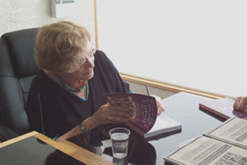 Dr. Rochelle G. Saidel signs a copy of her new Hebrew edition of The Jewish Women of Ravensbrück Concentration Camp on October 31 at Beit Lohamei Hagetaot.