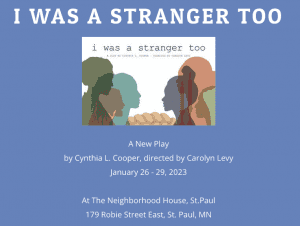 I Was A Stranger Too by Cynthia L. Cooper, will be having its first in-person on stage outing at the Neighborhood House (Wellstone Center) in St. Paul, Minnesota, on January 26-29, 2023. More information about the play and the production can be found here. Excerpts from the play were part of Remember the Women Institute’s Yom HaShoah Women, Theater, and the Holocaust event in April 2022.