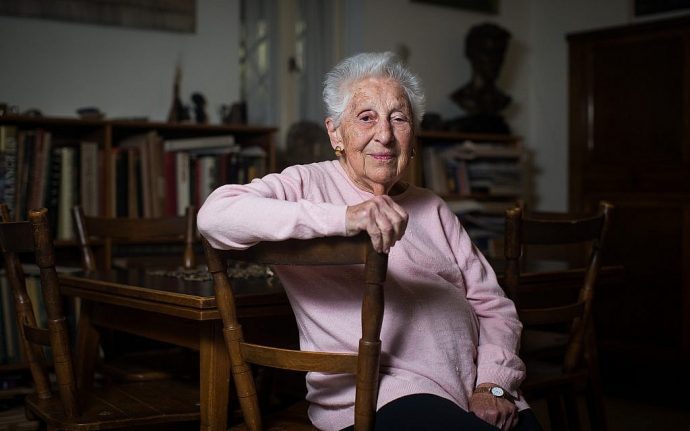 Image: Alice Shalvi, Israeli professor and educator, at her home in Jerusalem on March 14, 2016. (Yonatan Sindel/Flash90)